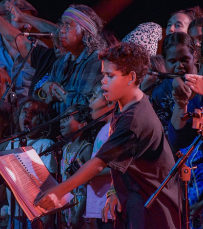 Pictured from left to right: Shooting Stars program, Ngaarda Media truck, Big hART Songs for Freedom concert Roebourne, Bunuba Dawangarri Aboriginal Corporation in Fitzroy Crossing.