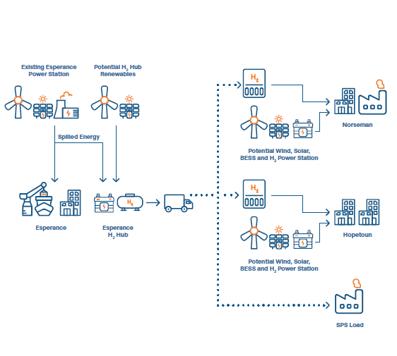 - the viability of small-scale hydrogen production at an Esperance-based hub, using spill energy, new and existing assets;
